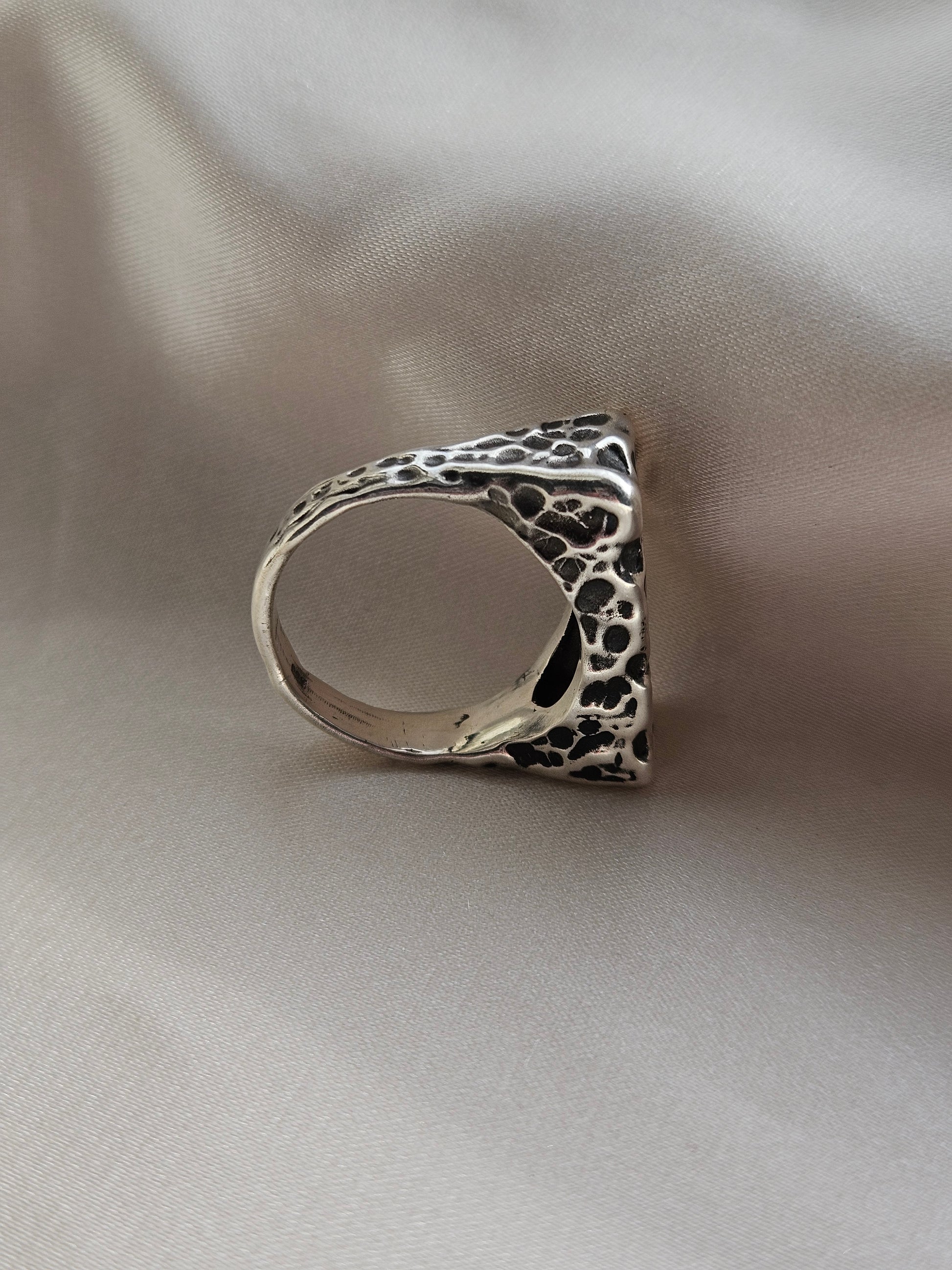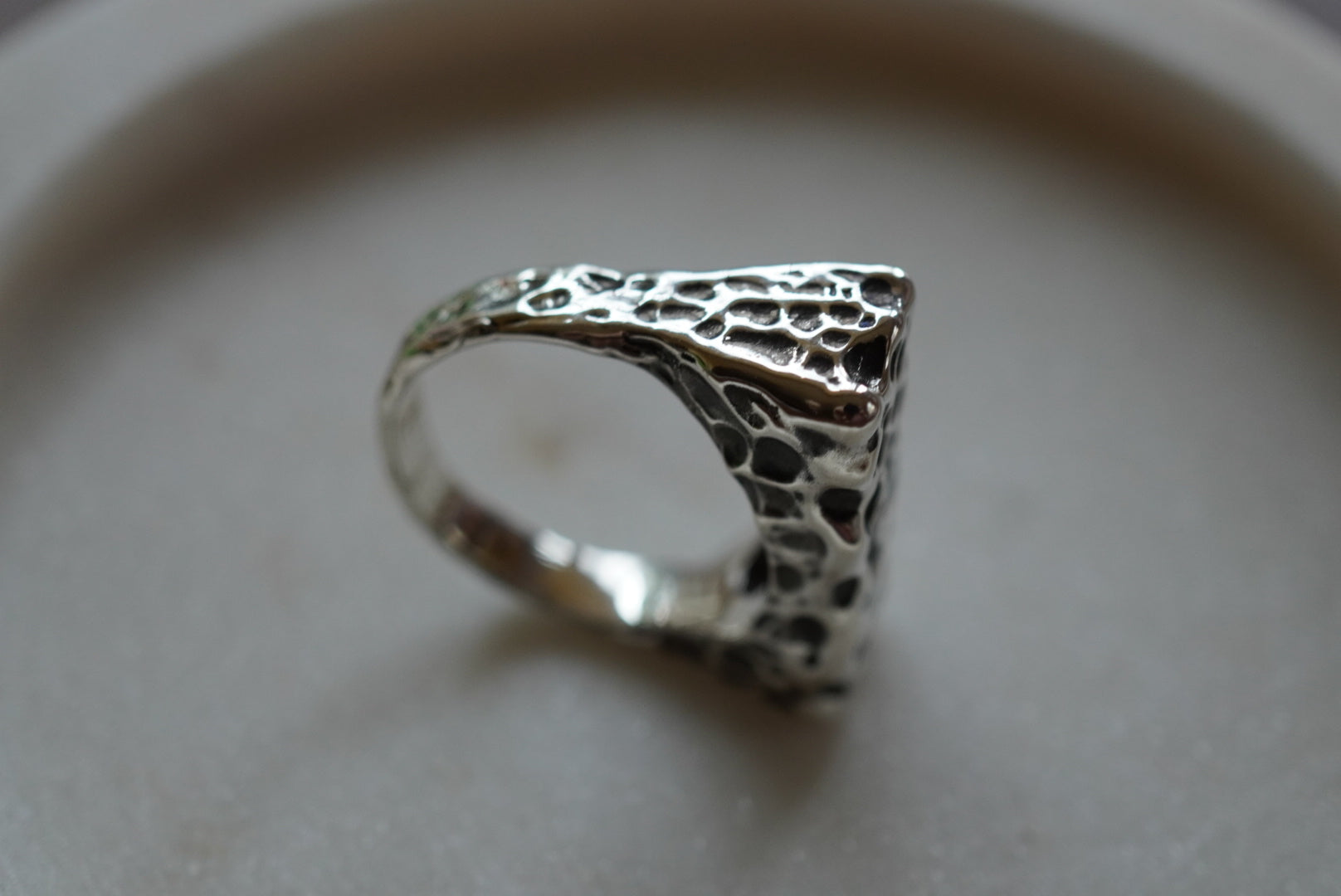 Hand crafted from recycled Sterling Silver, the Mire signet is a bold statement piece